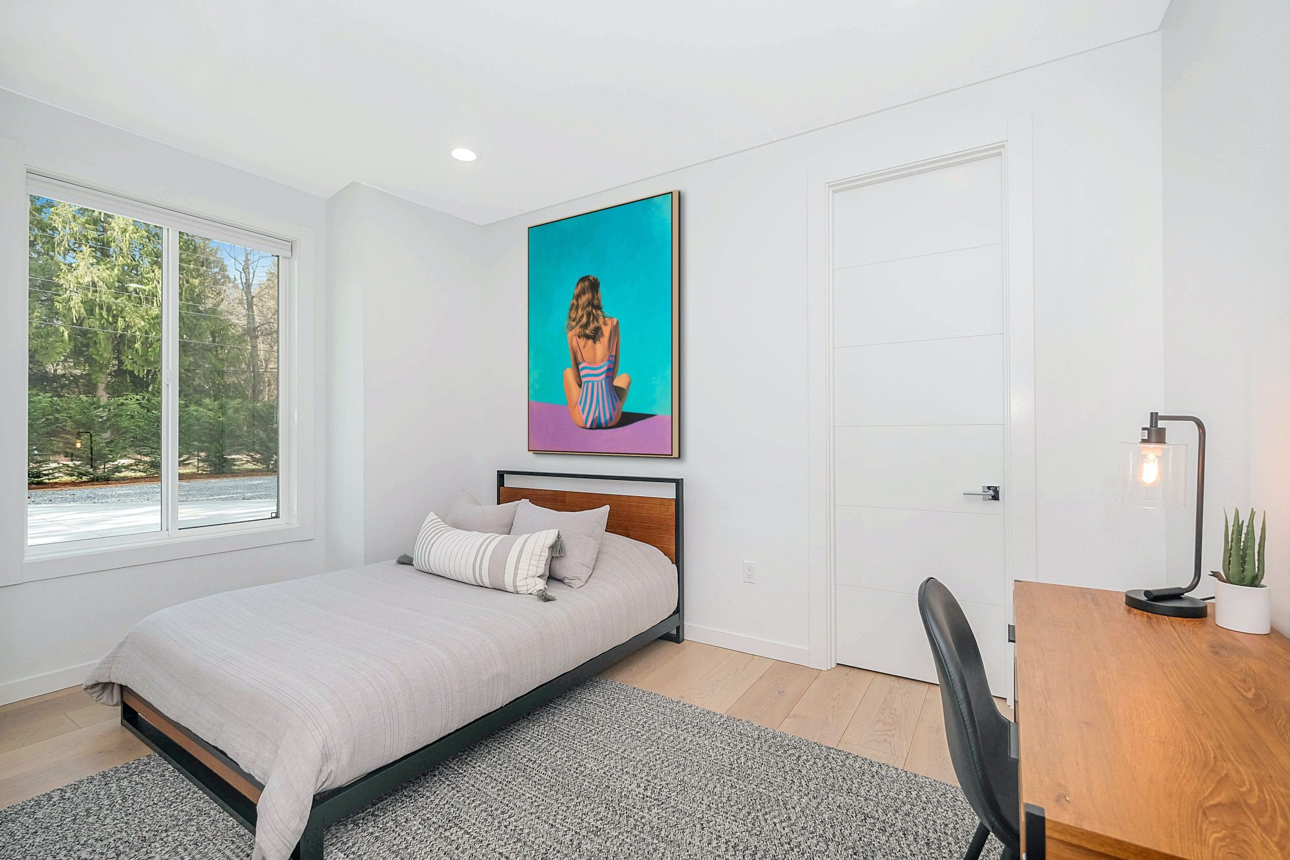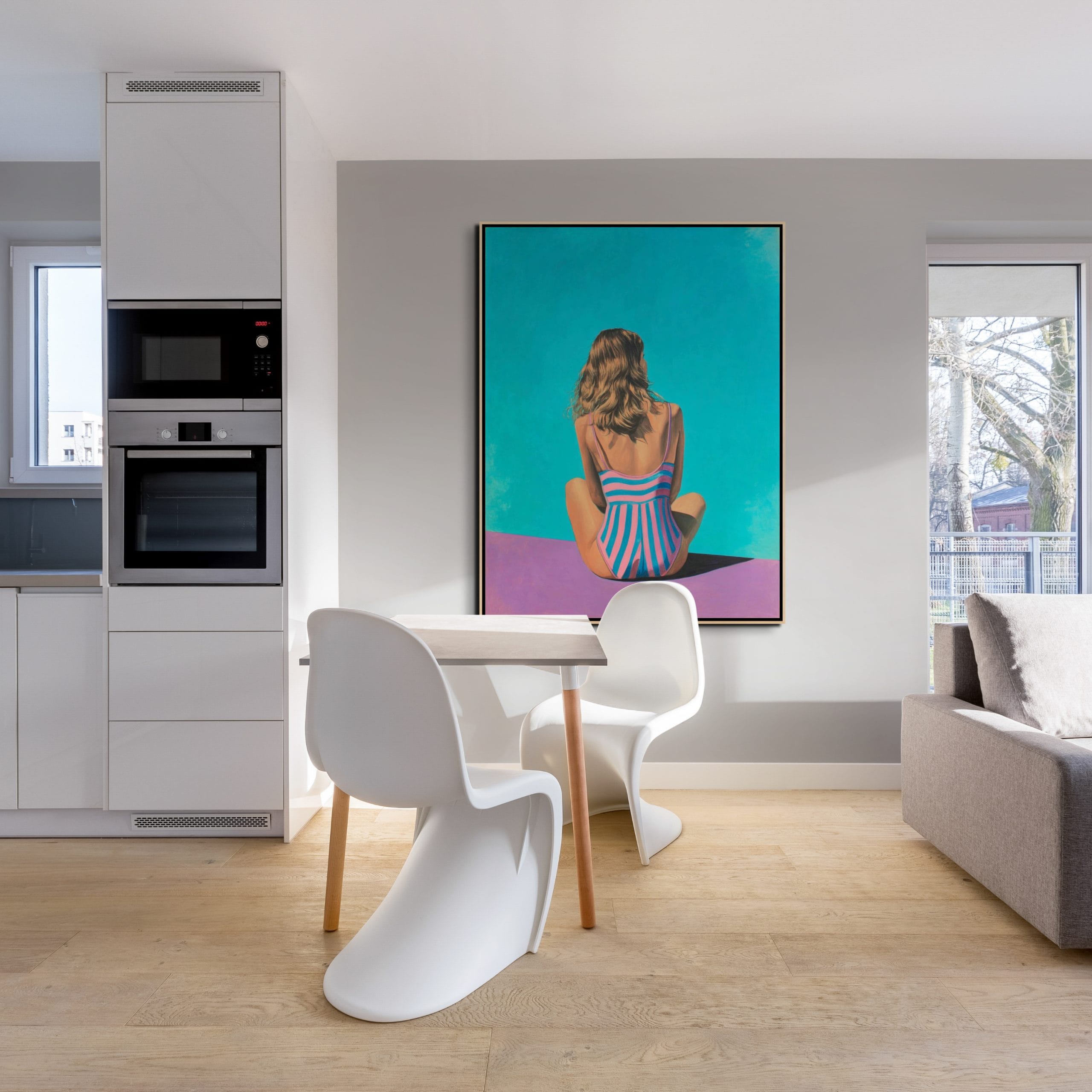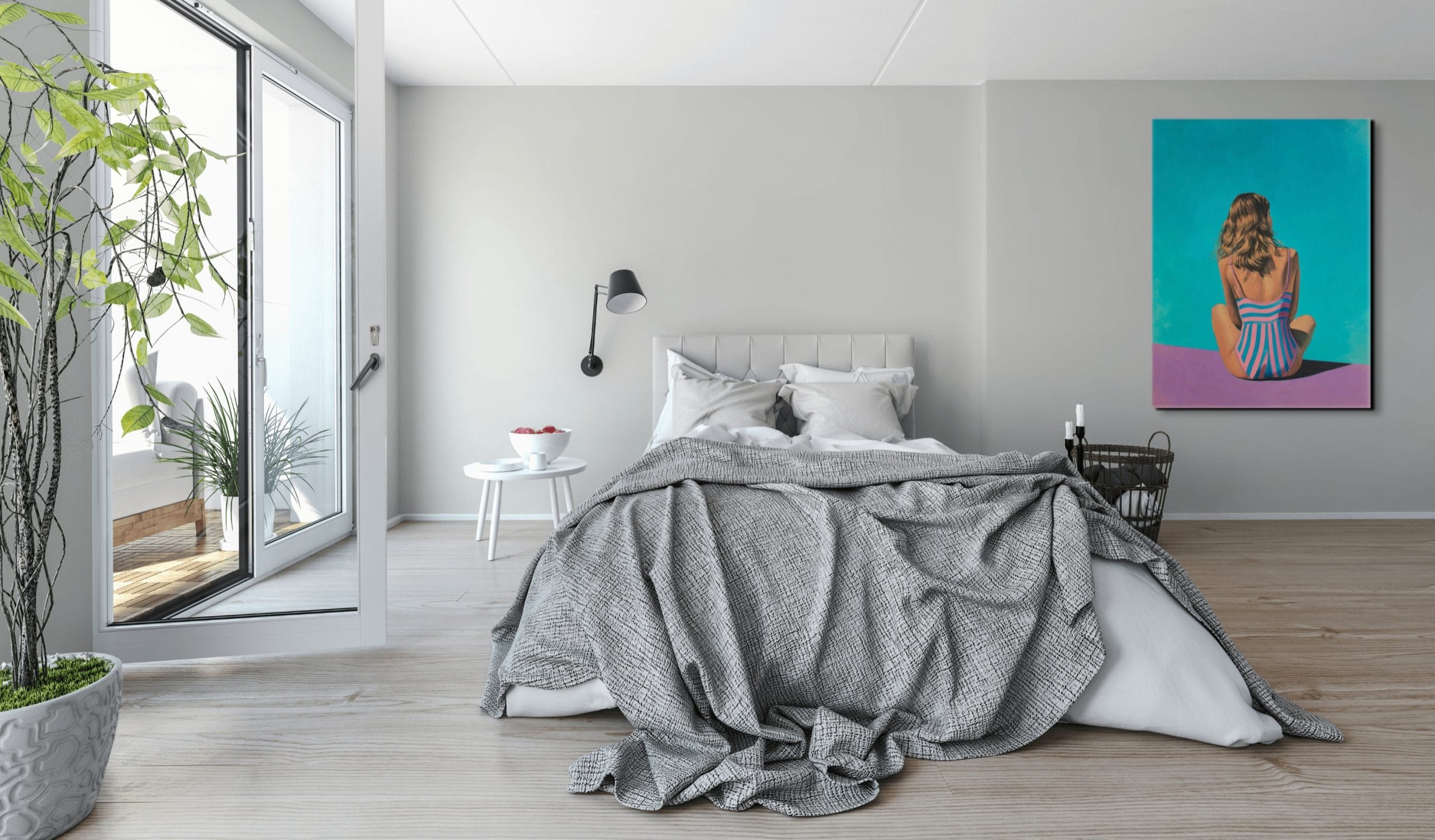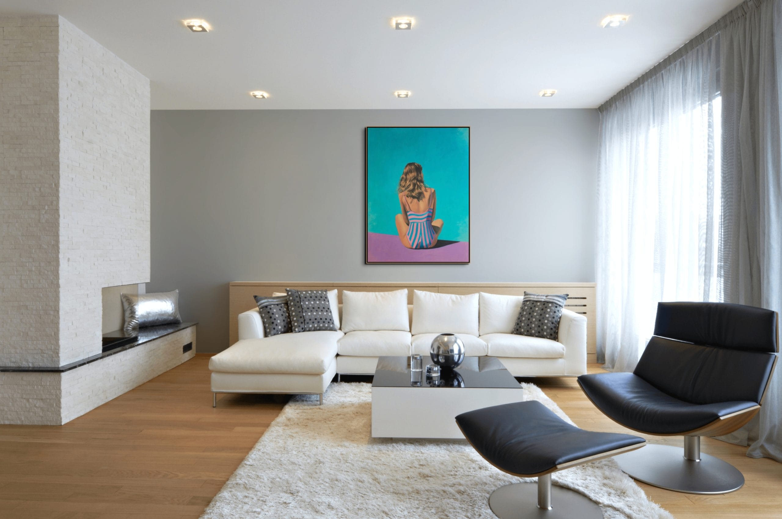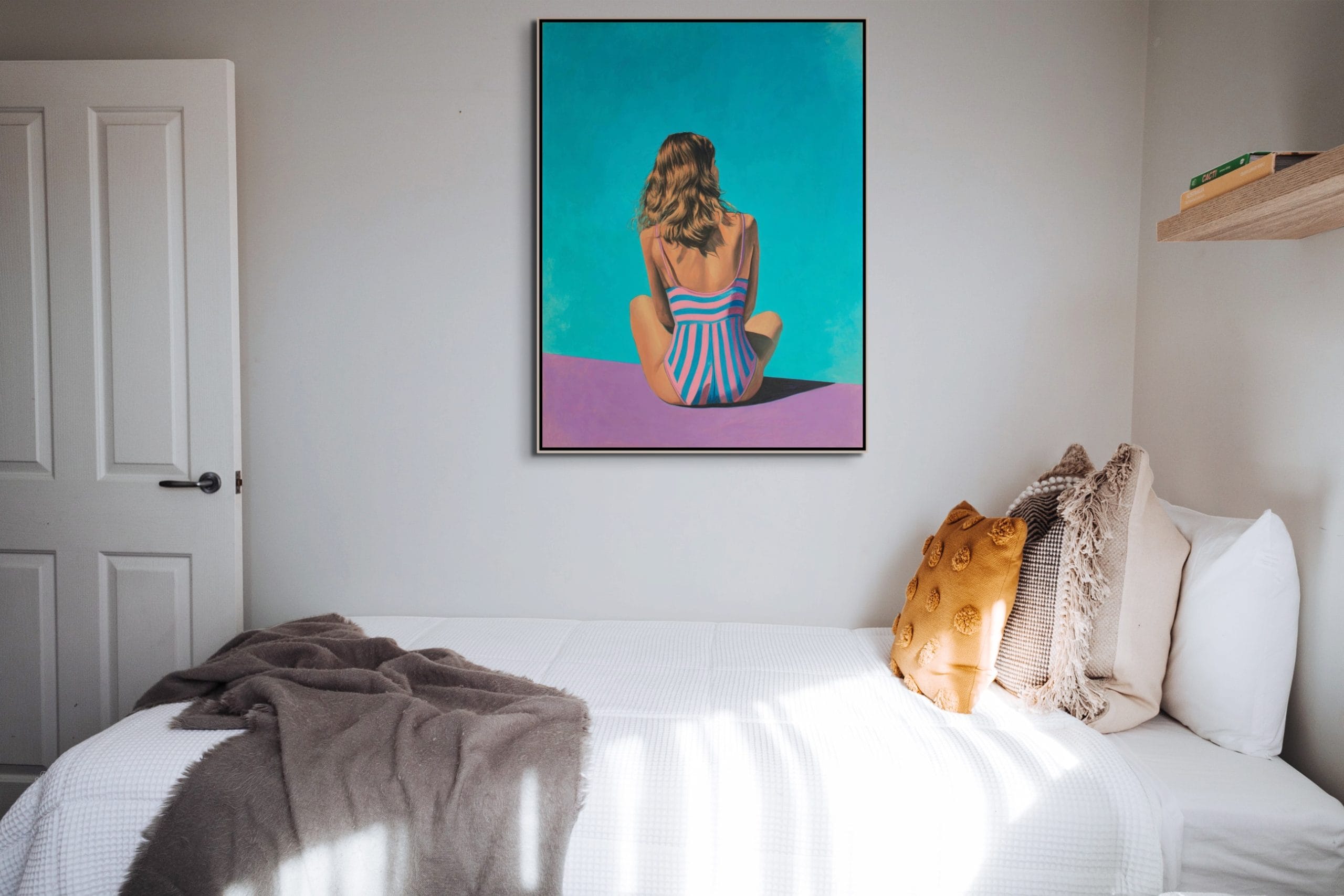 Atmosféra tohoto díla vás okamžitě přenese do prostředí absolutního ticha a relaxace, kde se čas na okamžik zastavil. Celé plátno prostupuje měkké a přirozené světlo, které velmi jemně vykresluje kontury postavy i okolní vodní hladiny. Barevné ladění je postaveno na klidných a světlých tónech, které navozují pocit bezpečí a vnitřní vyrovnanosti. Energie malby není útočná, ale naopak velmi konejšivá, což z díla činí ideální prvek pro místnosti určené k odpočinku. Každý pohled na tento obraz přináší nové vizuální podněty, aniž by narušoval celkový dojem řádu a čistoty, který je pro tento styl typický.