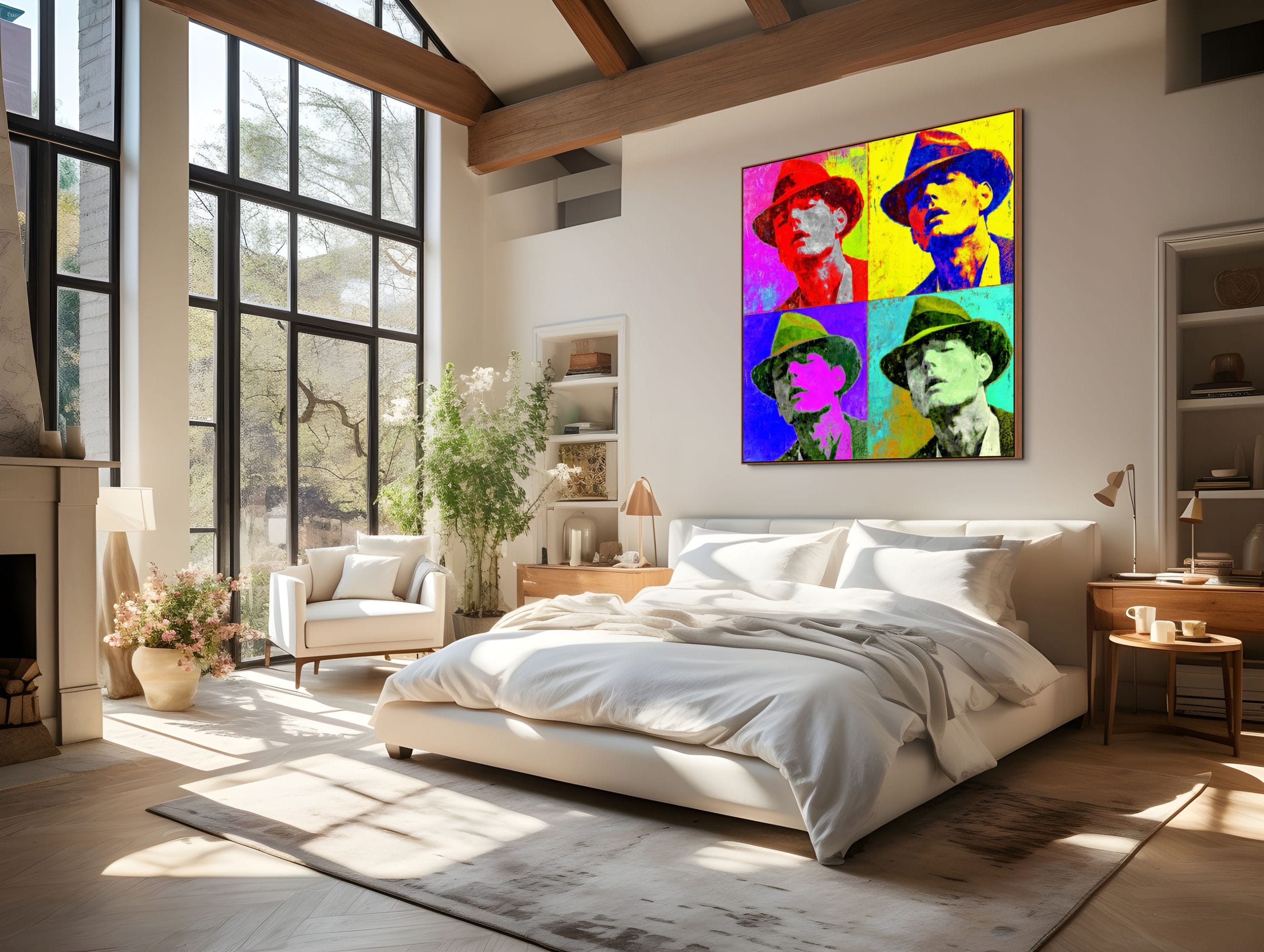 Právě práce s barvou je jedním z nejdůležitějších prvků, které Pop art obrazy využívají. Červené, žluté, modré i zelené plochy zde vytvářejí výraznou energii a rytmus, který okamžitě přitahuje pozornost. Opakování portrétu zároveň vytváří vizuální dialog mezi jednotlivými variantami a umožňuje divákovi vnímat obraz jako dynamickou barevnou sérii.