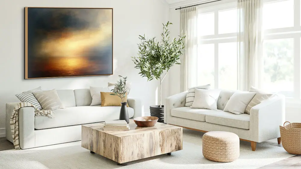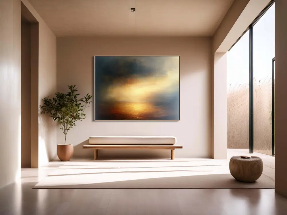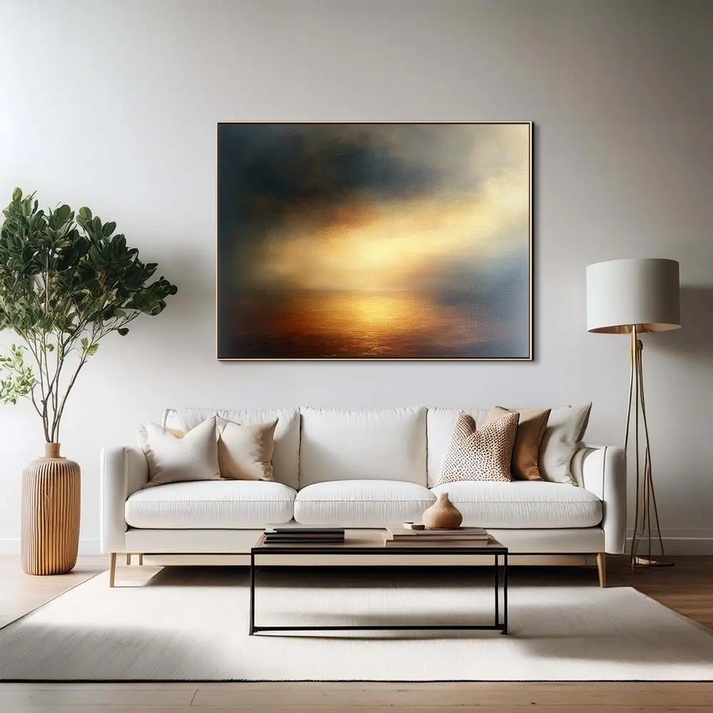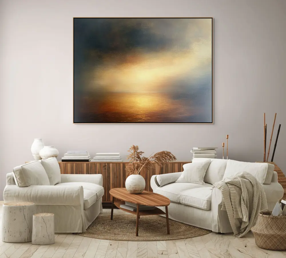 Luxusní obraz se zlatavým světlem a jemným přechodem tónů dodá interiéru eleganci i hloubku.