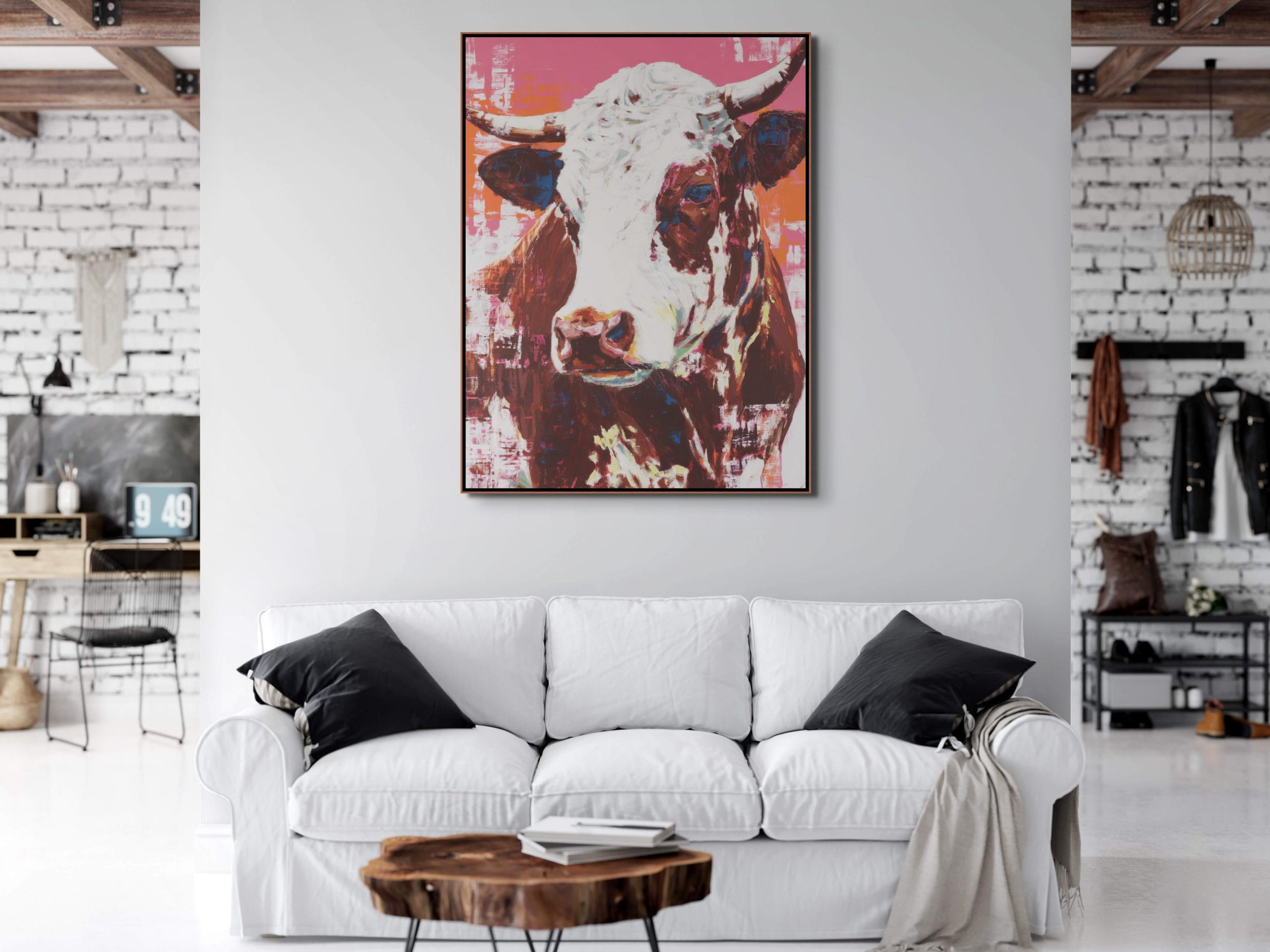 Obraz působí jako výrazný, ale vyvážený prvek interiéru, který dokáže prostor oživit a dodat mu osobitý charakter. Díky svému pojetí se Obraz krávy uplatní v moderních i rustikálně laděných interiérech, kde funguje jako nepřehlédnutelný solitér.