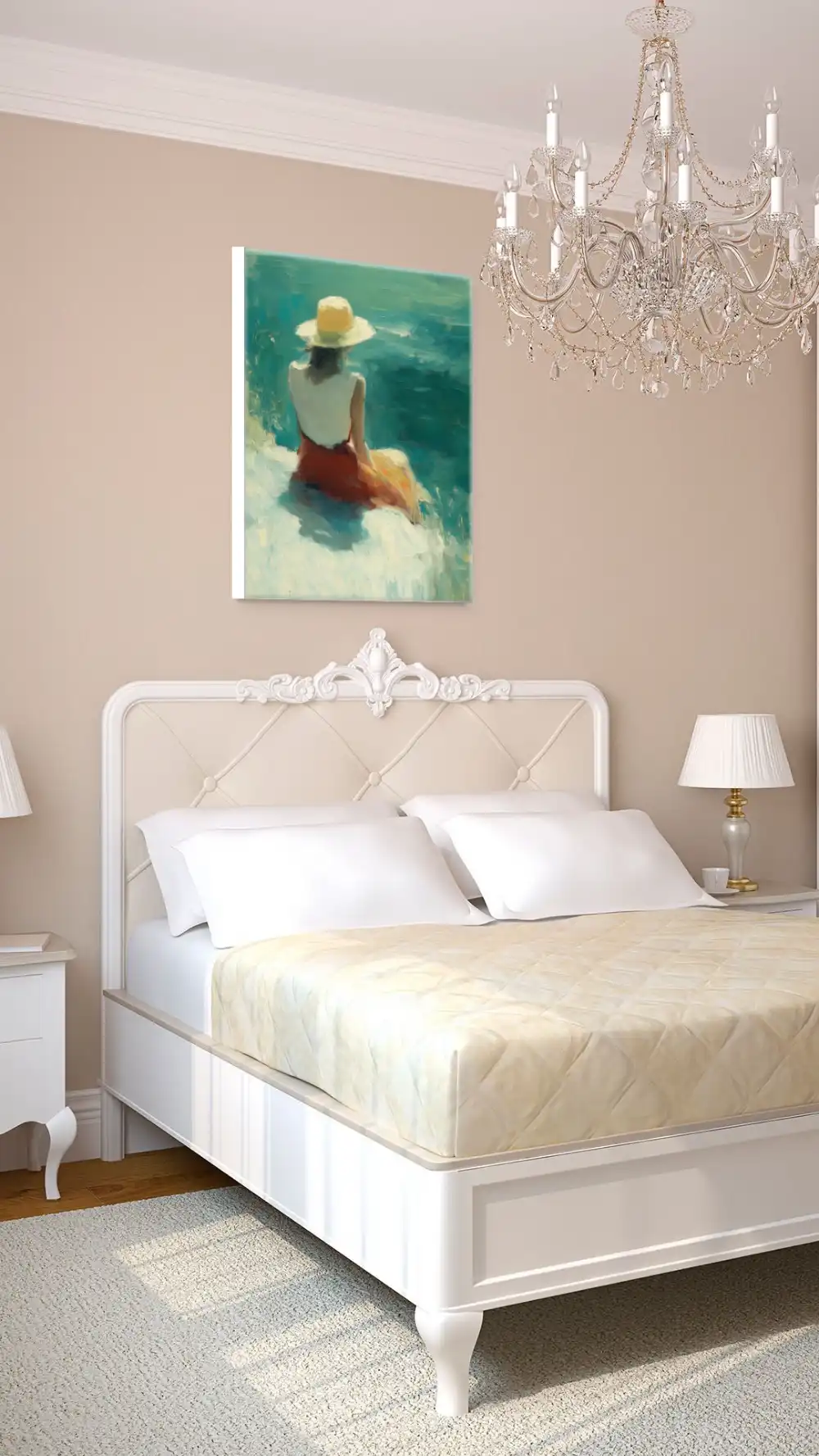 Jedná se o ručně malovaný originál inspirovaný impresionismem, ideální do interiérů s jemným, harmonickým laděním. Dílo vynikne zejména v ložnici, čtecím koutku nebo letním apartmánu.