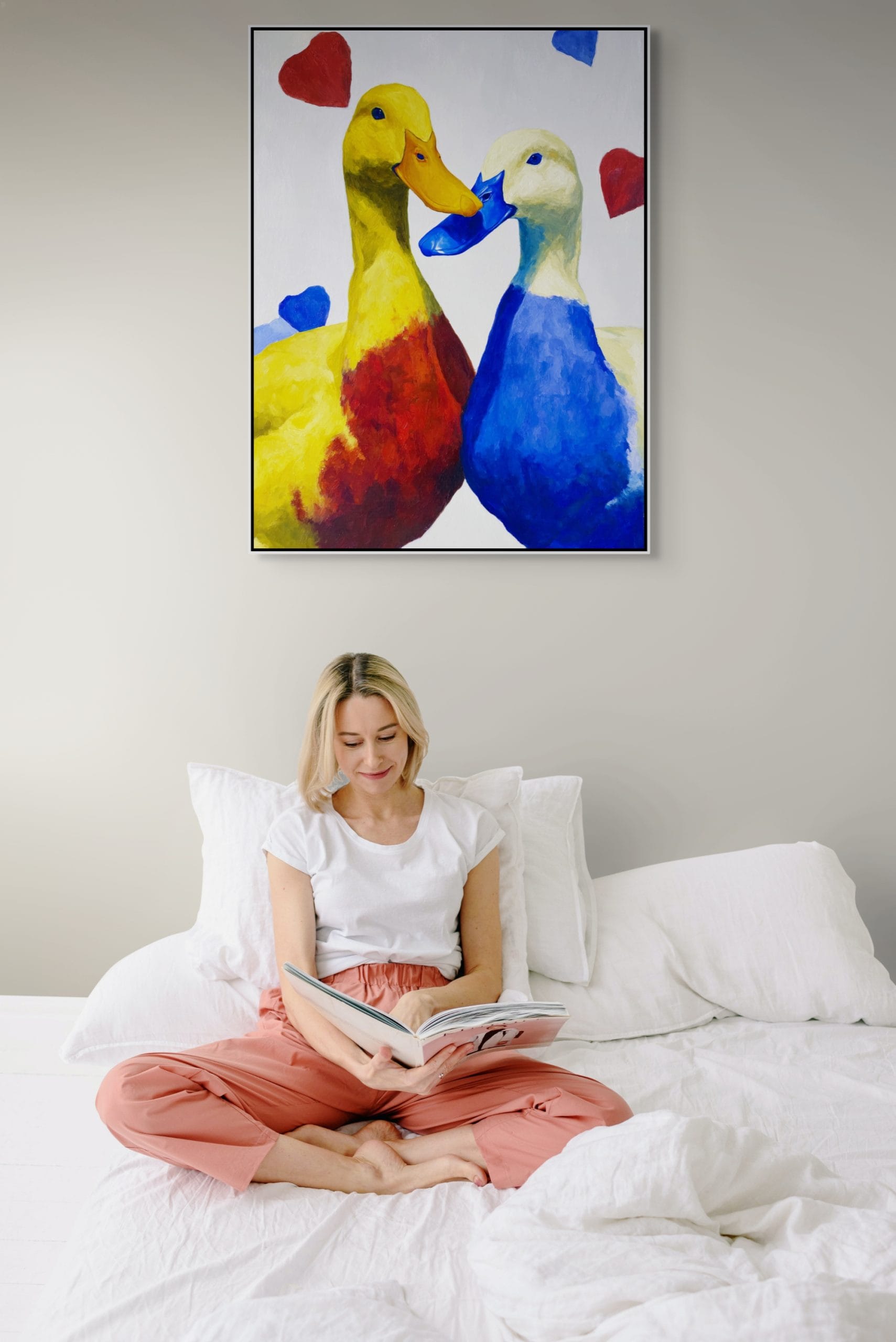 V aktuálním kontextu interiérových trendů, které sázejí na odvahu v barvách, se tento obraz stává výrazným designovým prvkem. Expresivní stylizace a viditelná struktura akrylových barev dodávají malbě hloubku, kterou digitální reprodukce postrádají. Moderní obraz husy skvěle ladí s minimalistickým nábytkem v neutrálních tónech, kde může naplno vyniknout jako barevný akcent. Ruční práce zaručuje, že každý kus má svou jedinečnou texturu a charakter, což z něj činí hodnotný prvek pro každého milovníka současného umění.
