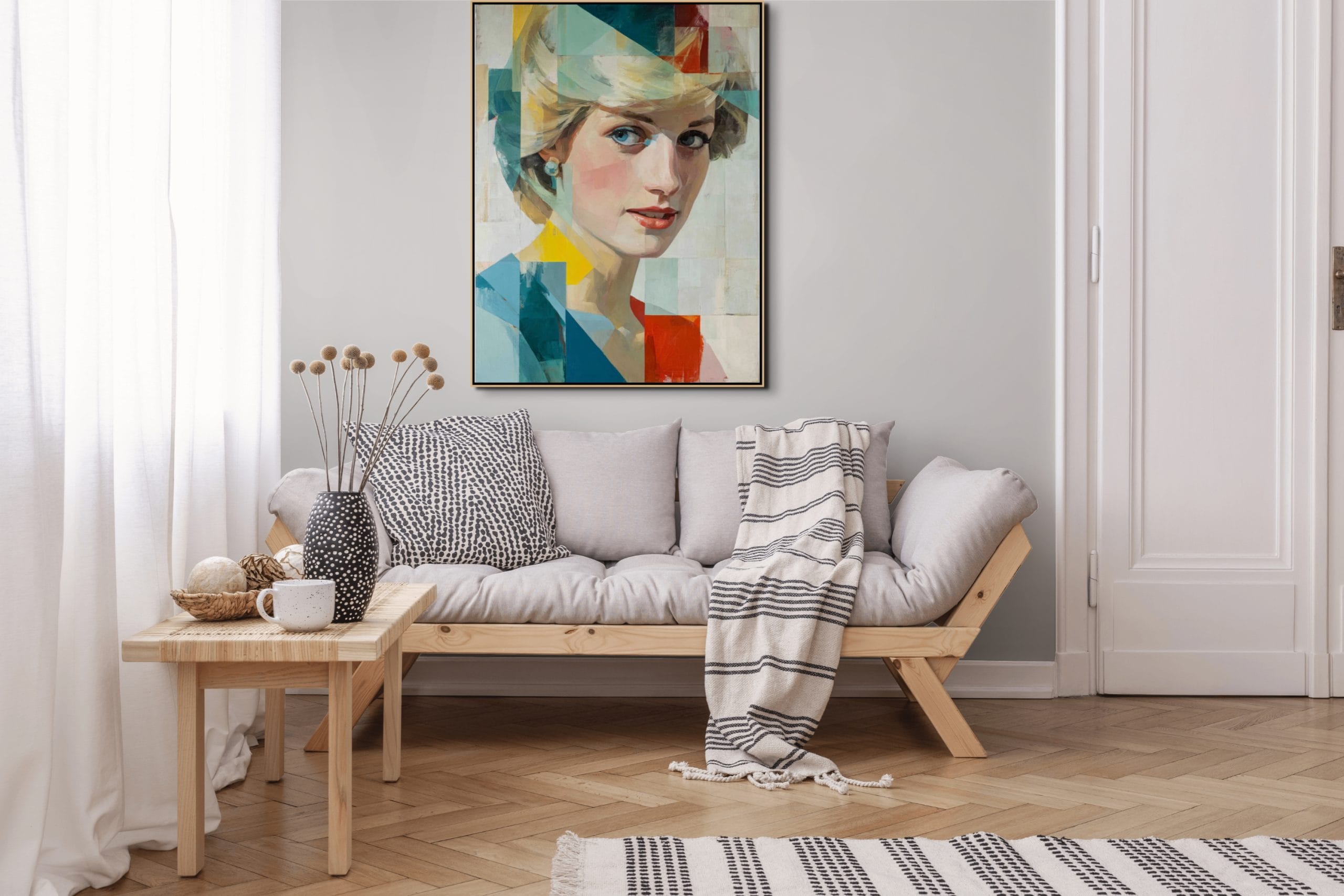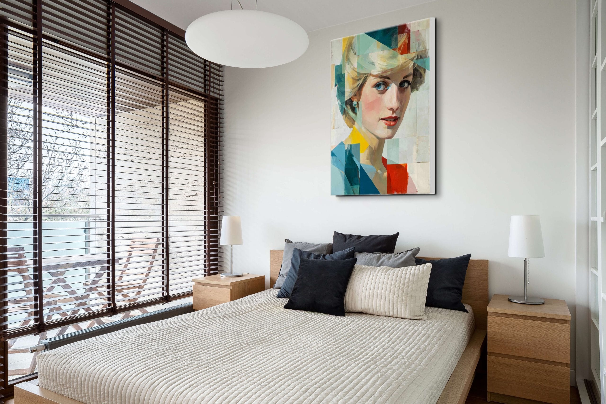 V interiéru obraz funguje jako výrazný, ale kultivovaný prvek, který dokáže prostoru dodat osobnost a jemnou dramatičnost. Kombinace světlých neutrálních tónů s kontrastními barevnými akcenty umožňuje snadné začlenění do moderních obývacích prostor, pracoven i reprezentativních místností.