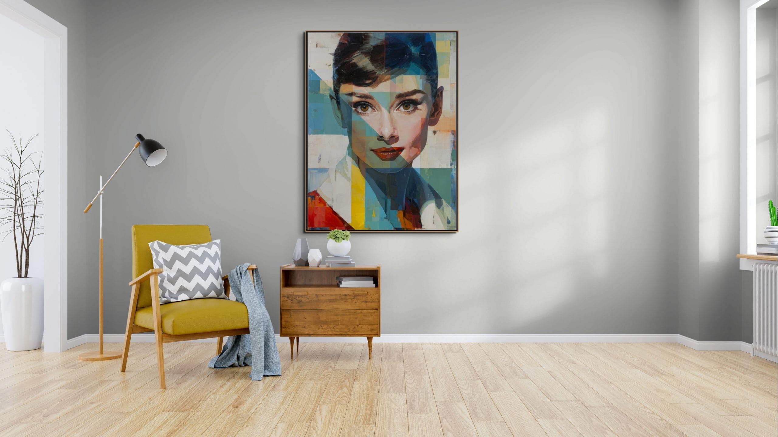 V interiéru působí obraz jako elegantní solitér, který přitáhne pozornost, ale nepůsobí těžce ani přeplácaně. Díky kombinaci chladnějších modrých a zelených tónů s teplými akcenty v obličeji a na rtech se dobře uplatní v moderním obývacím prostoru, pracovně i stylové ložnici, kde dodá stěně charakter a hloubku.
