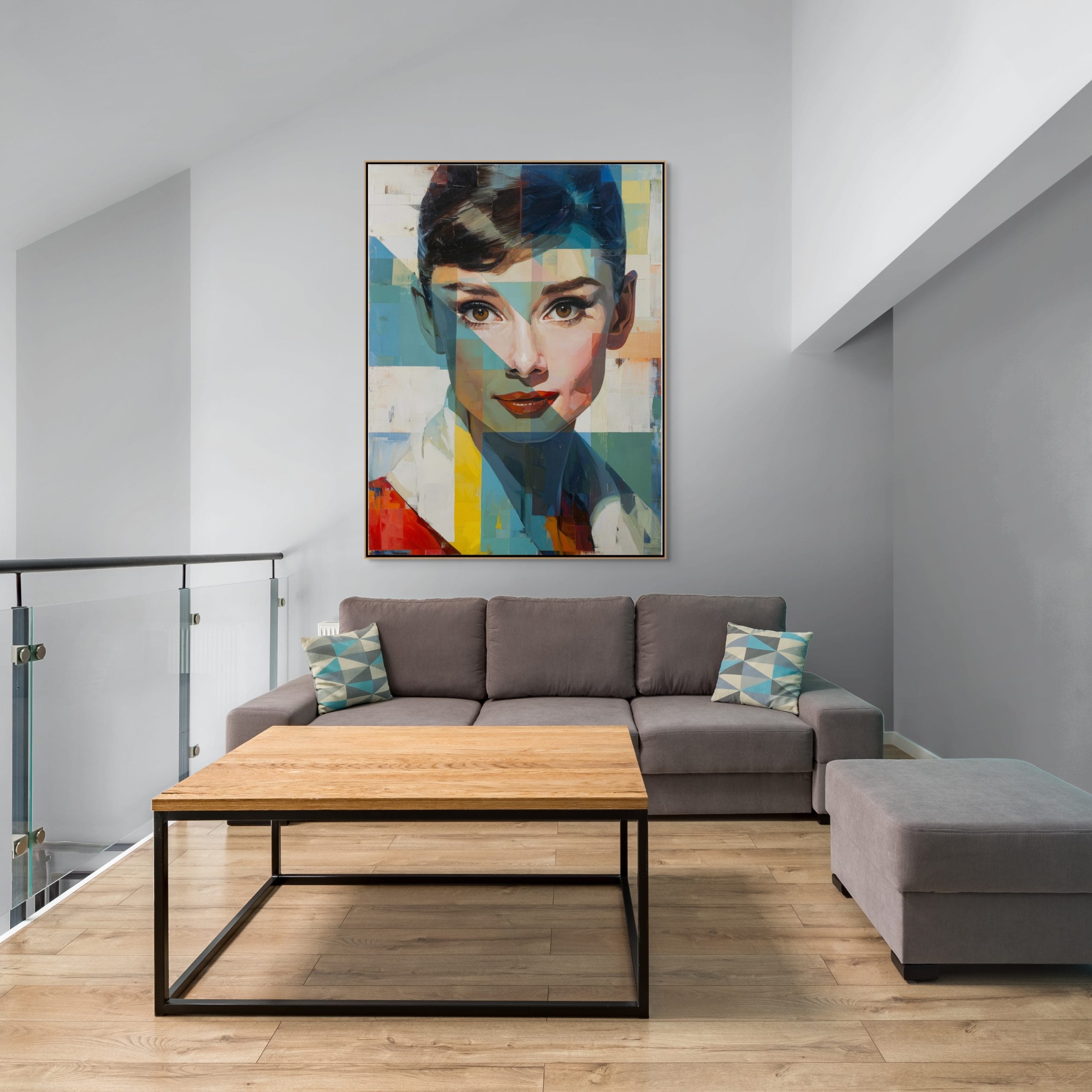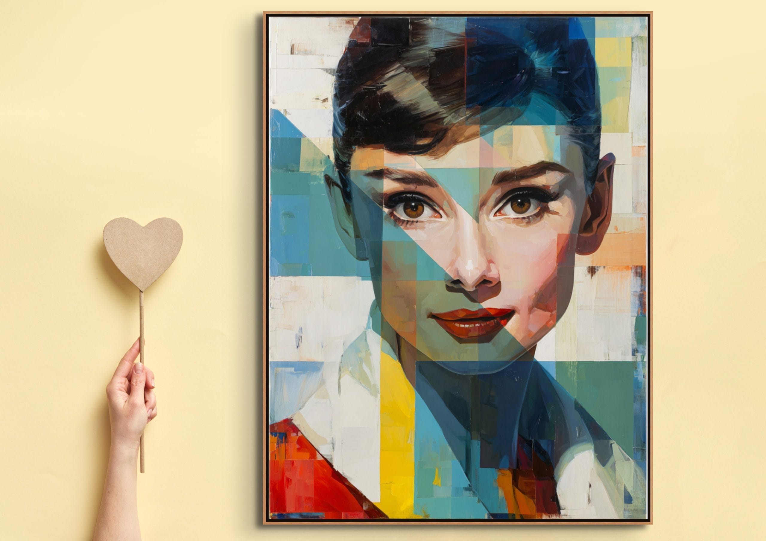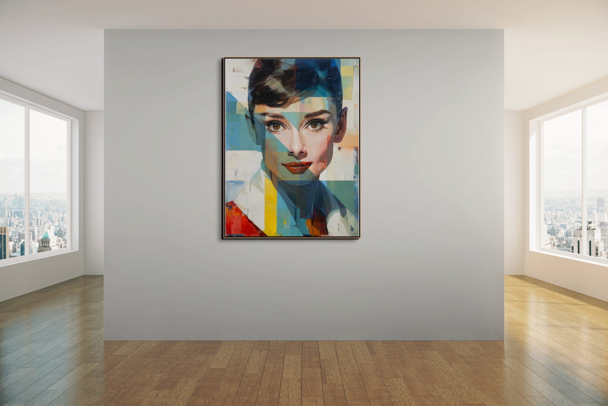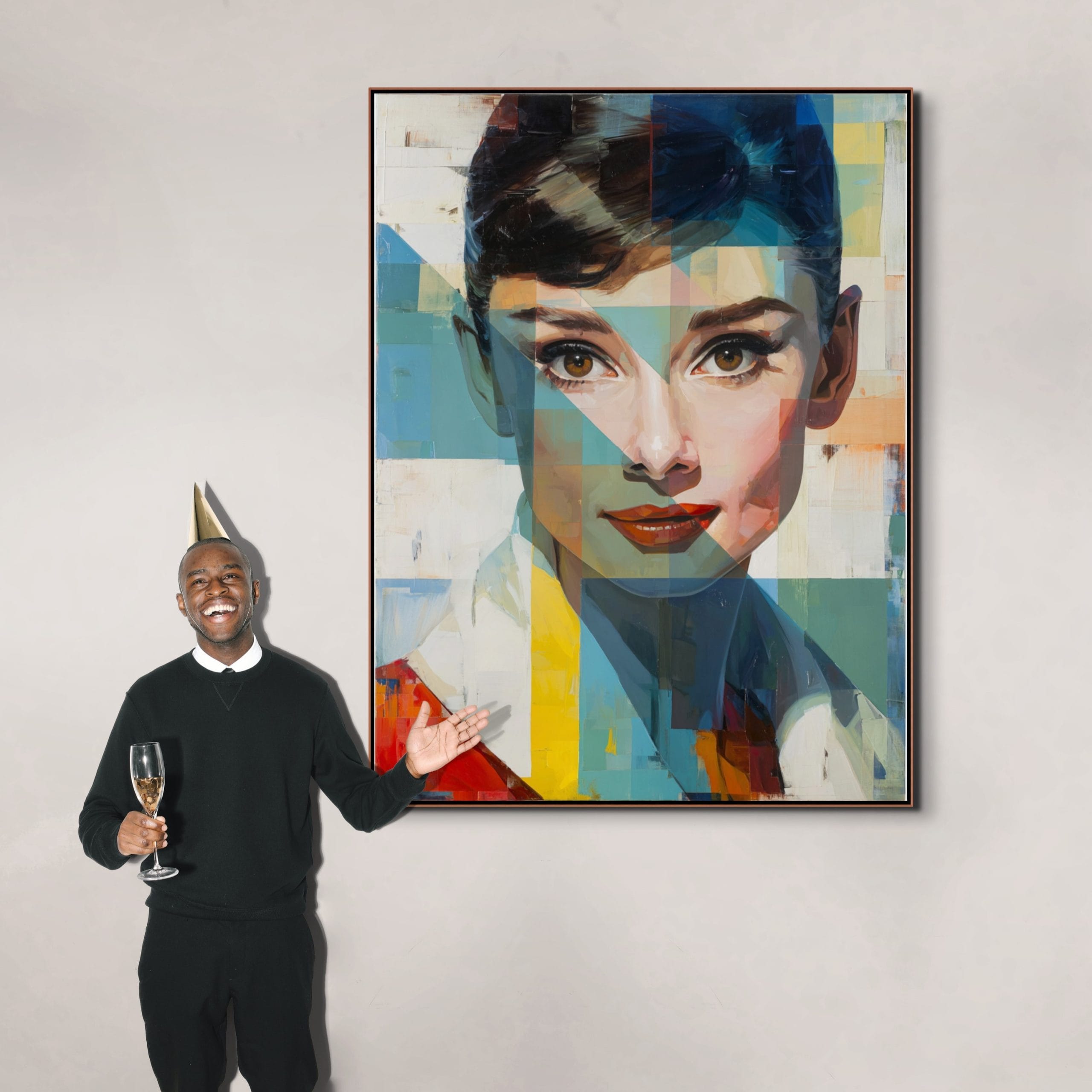 Portrét pracuje s výrazným, mozaikovým členěním barevných ploch, které skládá tvář do jemných přechodů a geometrických fragmentů. Oči zůstávají hlavním bodem soustředění – klidné, přímé a velmi lidské – zatímco zbytek kompozice vytváří rytmus a napětí mezi světlem, stínem a barvou.