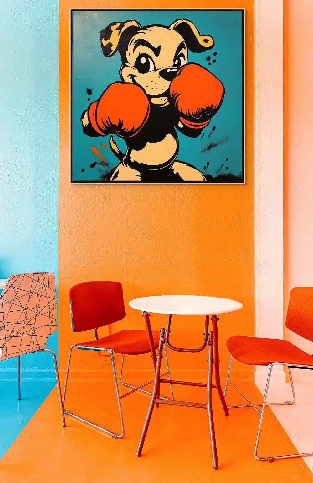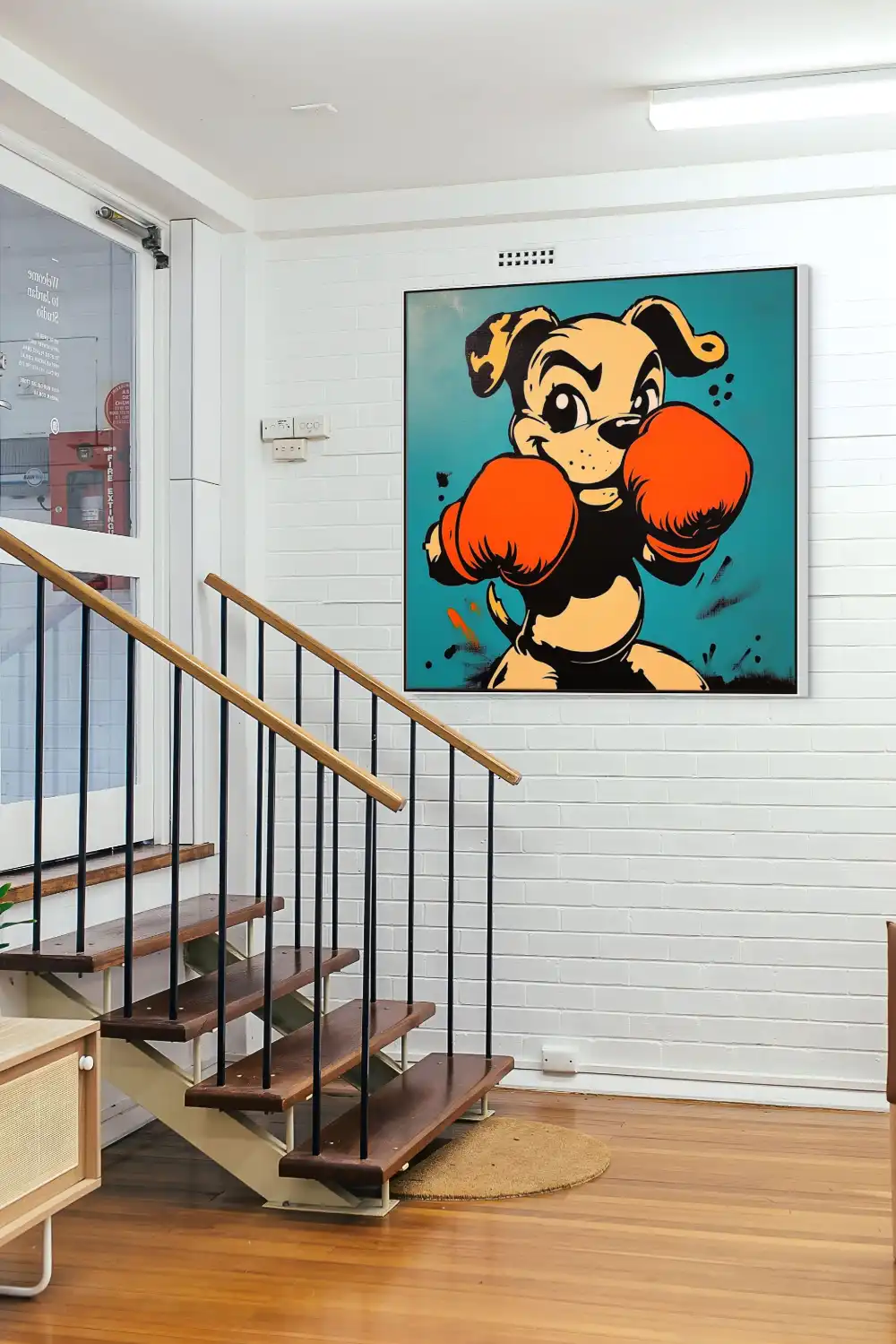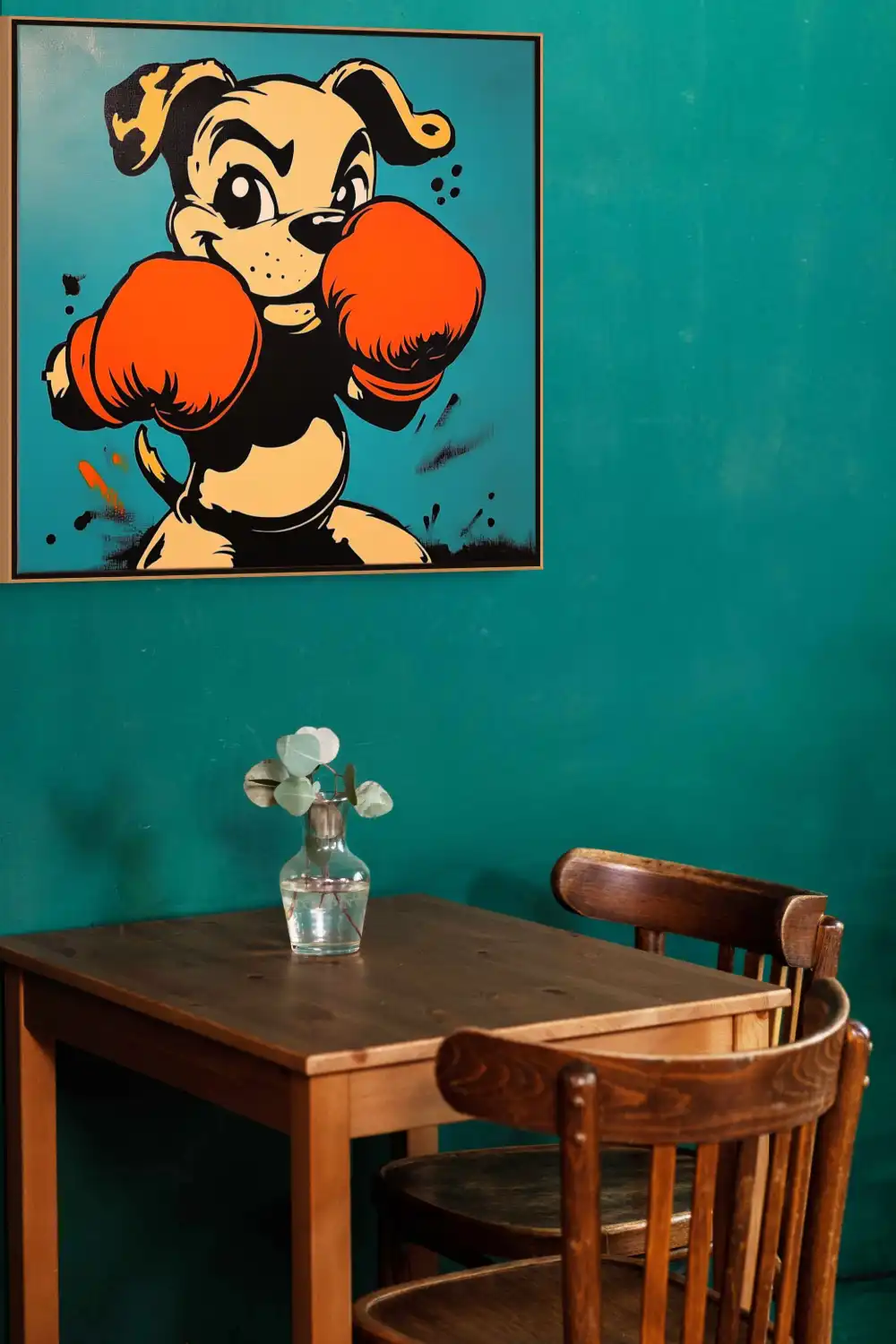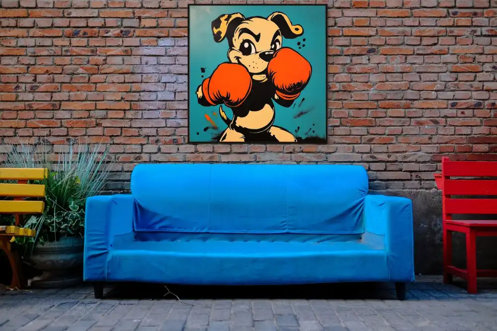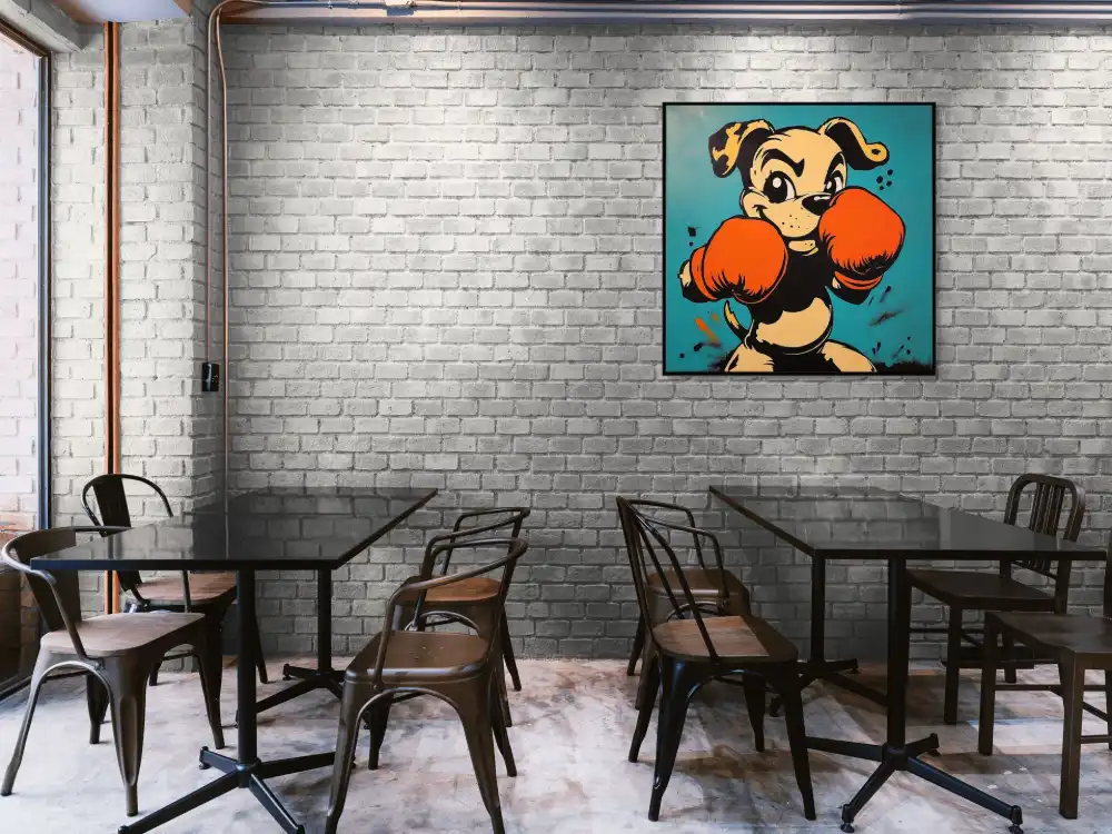 Tento obraz je ideální pro moderní a neformální prostory – dětské pokoje, herny, sportovní interiéry nebo odlehčené kanceláře. Pop art obraz se psem v boxerských rukavicích přitáhne pozornost, pobaví a dodá prostoru jedinečný charakter.